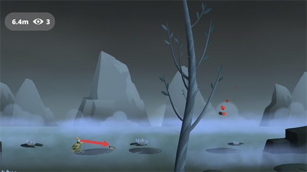 4、在荷叶场景中,继续向【虫子】所在方向滑动屏幕,控制青蛙移动,完成该场景下的虫子捕捉任务。
