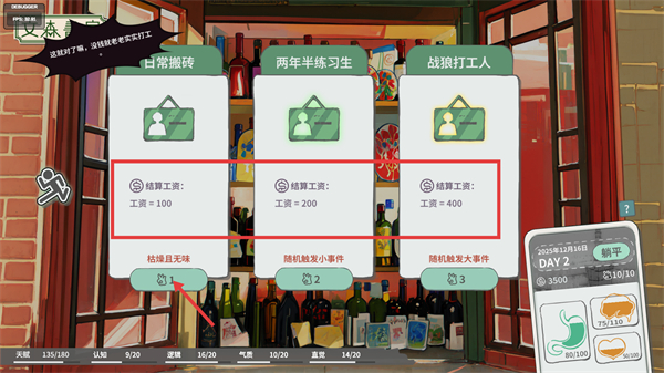 4、打工触发事件时,选择【浦天光】相关选项需消耗【现金-6000】,可兑换【饱腹+10】,需根据资源情况选择。