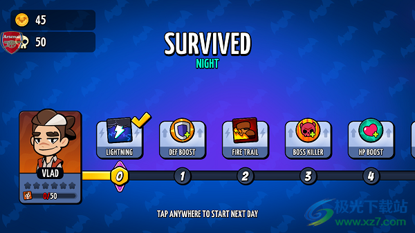 4、在每次黑夜都是挑战的开始,玩家需要努力的击杀更多的吸血鬼。