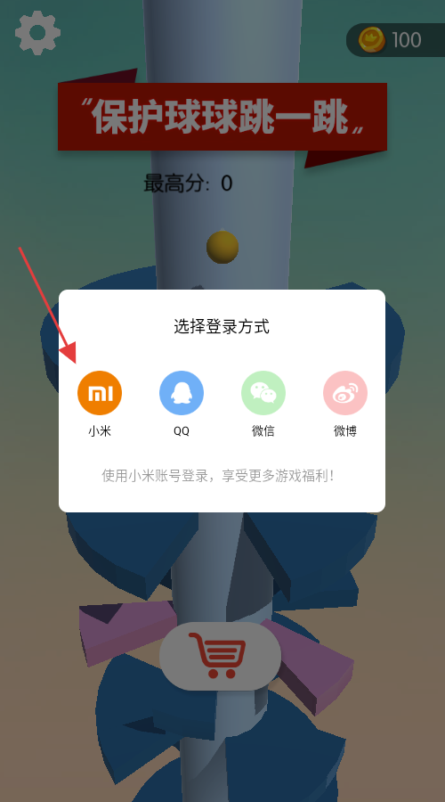 2、在【选择登录方式】界面,点击【小米】图标,选择用小米账号登录游戏。