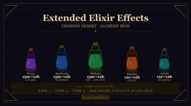《红色沙漠》扩展灵药效应MOD。改变弗蕾雅/阿波罗妮娅/梅莉亚拉/海登/阿斯特丽德的灵药持续时间。新版本发布了V1.3,分为两个不同的版本,一个时间提升更快,另一个更平衡但时间有所提升。感兴趣的玩家快来diab暗黑下载吧!