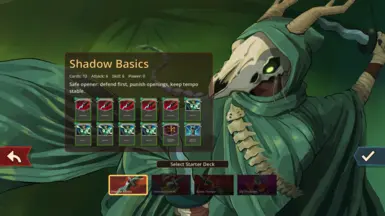 1、允许你在游戏开始前为每个角色选择一个起始卡组预设。目标是在保持原游戏流畅和平衡感的同时,增加有意义的早期构建选择。