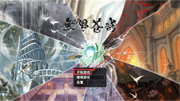 1、进入【无限苍穹】游戏界面后,选择【开始游戏】进入新档,或选【继续游戏】加载进度,也可通过【设置】调整游戏参数。