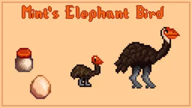 《星露谷物语》薄荷大象鸟MOD,新增了一只大型鸟类,可以在谷仓里用鸵鸟孵化器孵化,孵化需时5天,成熟需9天。象鸟每8天产1枚蛋,可以在蛋黄酱机中制作3个蛋黄酱。感兴趣的玩家快来diab暗黑下载吧!